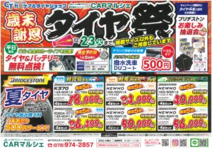 平日限定でタイヤ&バッテリーの無料点検や¥500で出来る撥水洗車もございます。