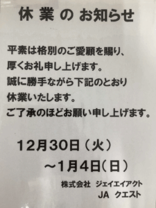 休業期間:令和7年12月30日(火)~令和8年1月4日(日)