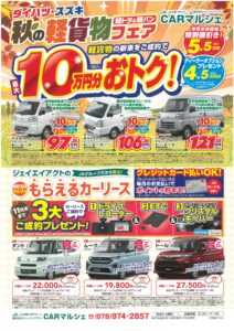 軽貨物(軽トラ・軽バン)の新車をご成約で10万円分お得になるフェアです(`・ω・´)b