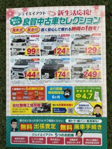チラシ以外にも良質な中古車を揃えておりますので、お気軽にスタッフにお問い合わせください。