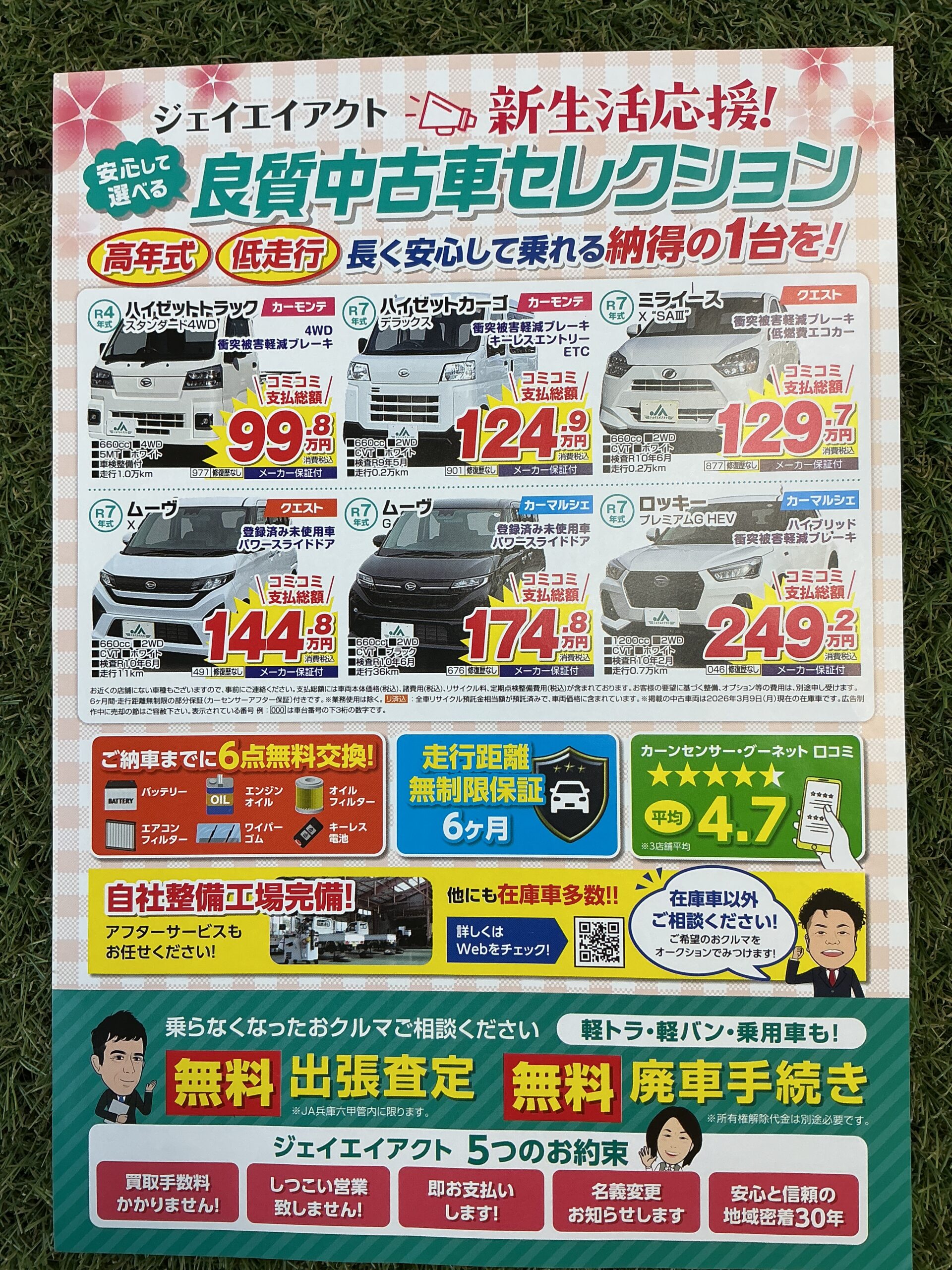 「新生活応援!春のコミコミスペシャルカー」を、限定2台ずつでご用意しました!!